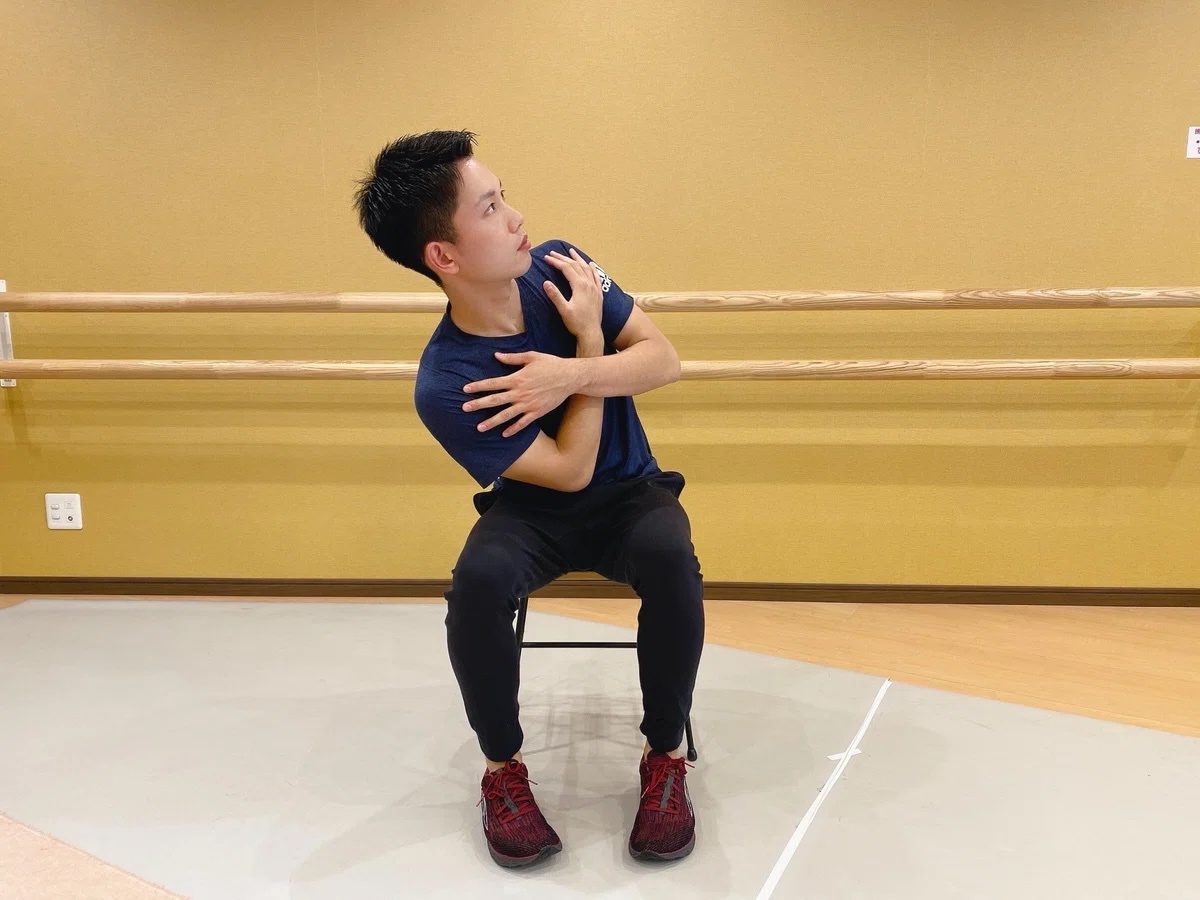 腹筋には、腹直筋と腹斜筋から、構成されています。腹斜筋は、腹直筋に比べ、刺激の与えにくい部位ですが、座って斜め上体振り子体操は、腹斜筋を刺激出来るトレーニングです。